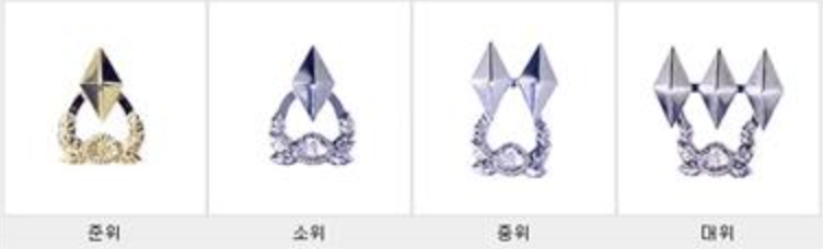 소위, 중위, 대위는 소위 "다이아 O개"라고 불리기도 합니다.